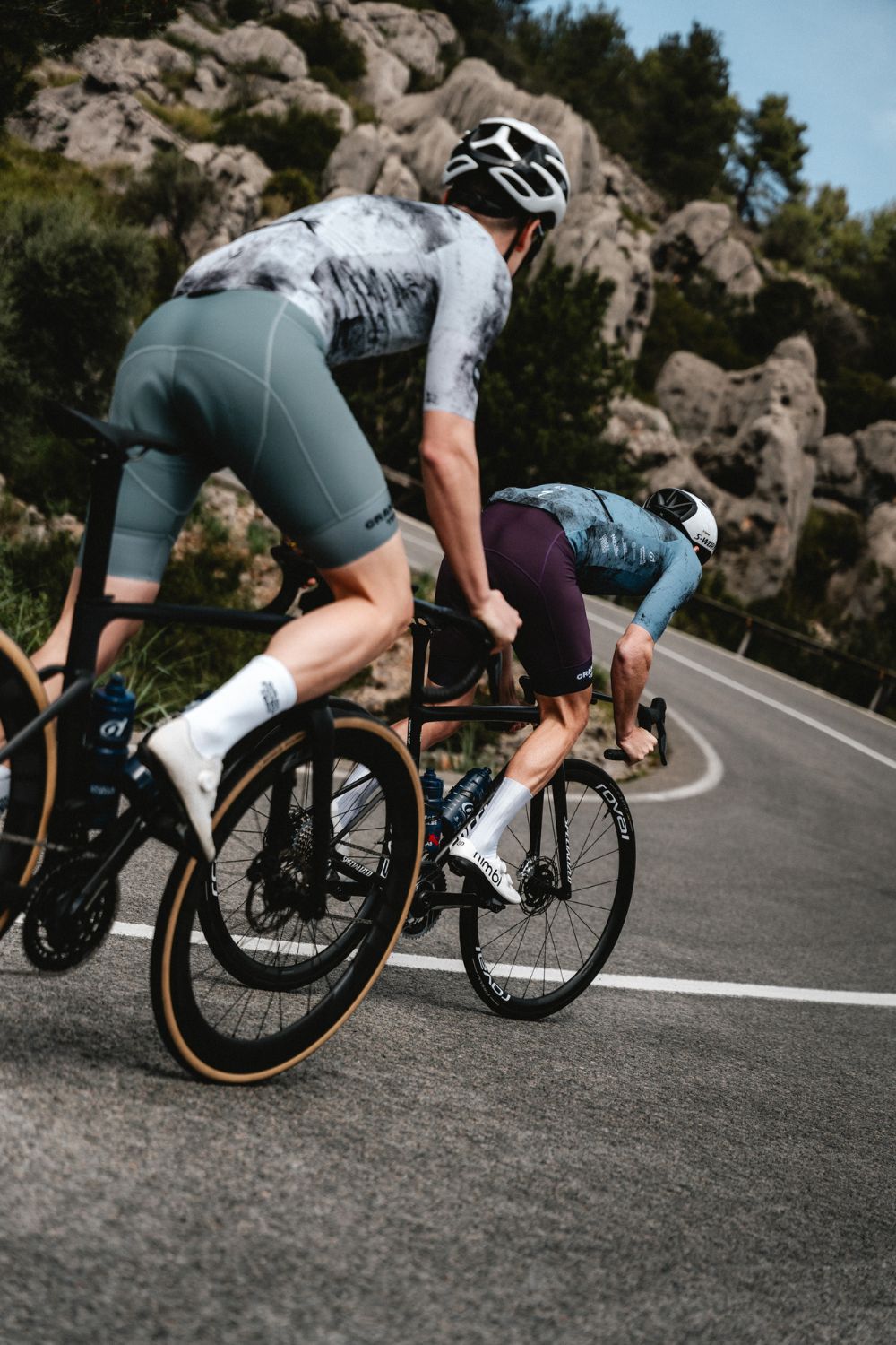Logos, patterns, and colors? In cooperation with our artistic designers, you will create a unique kit that represents the characteristics of your team or company. From jerseys and bib shorts to rain jackets and socks… Discover our wide range of products and pick all the different items that matches the needs of your team rides.